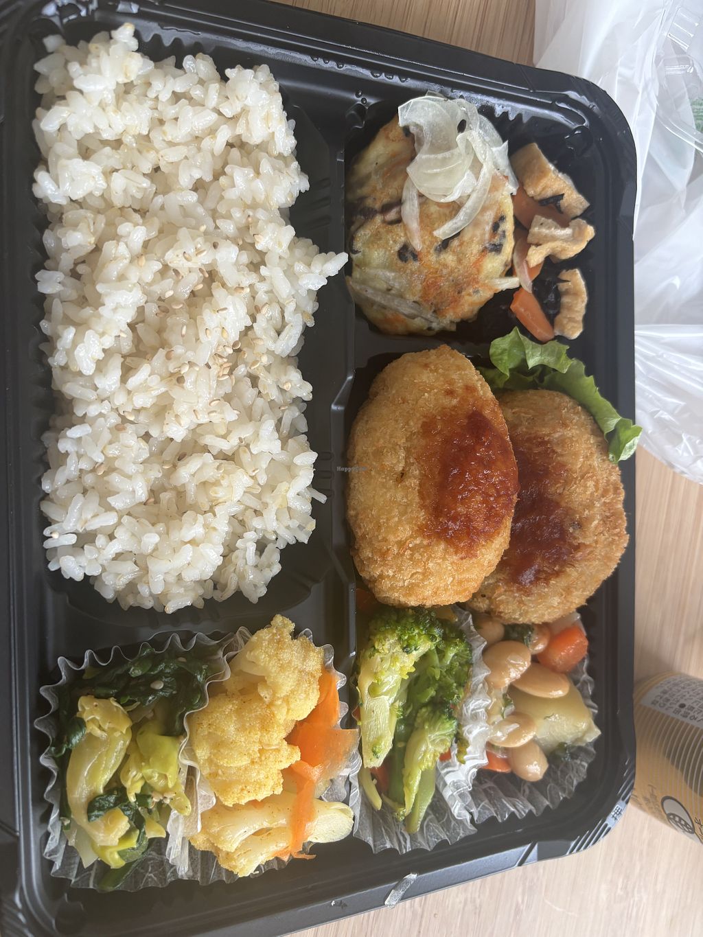 I already knew the shop for a long time and finally made it eating a lunchbox of them. It was delicious! They also sell meat containing lunchboxes, but the vegan options are clearly marked. For a vegan lunchbox you can choose 2 out of a few croquettes. The lunchbox was around 780¥, which is a really good price I think.