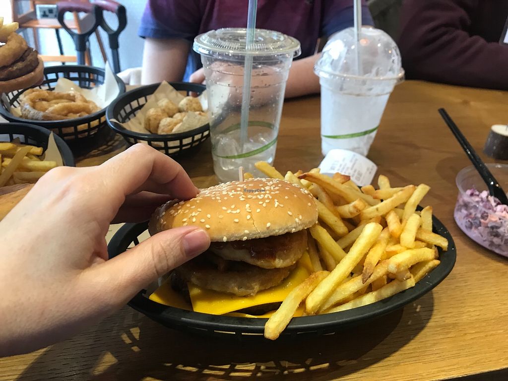 We visited today to break up a long journey back to London. Petersfield was a doddle to get to from the A3 - I'm so glad we stopped. It's different to anywhere else we've been. The theme is vegan junk food - burgers, fries, fried fake chicken - if you miss Macky Ds this is the place for you! But also the staff are lovely, the prices are fair & the decor is on trend & spotlessly clean. It's not as fast as real "fast food" - the food is made to order ratter than pre-prepared. If you want it to get fast.... Than eat here so they have the demand to create the conveyabelt! ;)