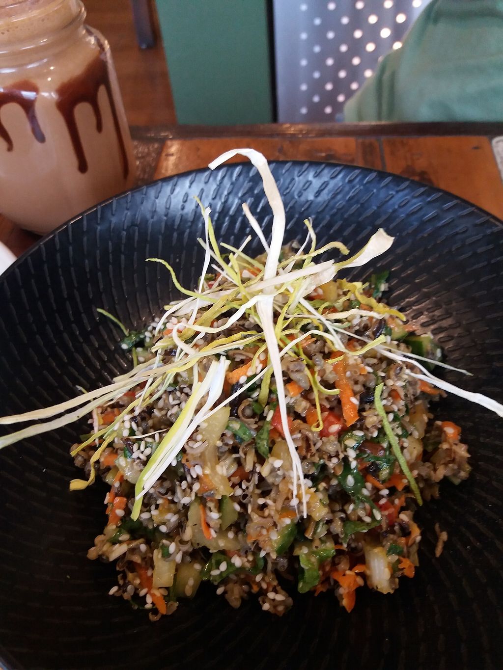 The acai bowl, rainbow salad and something else and some kind of scram…