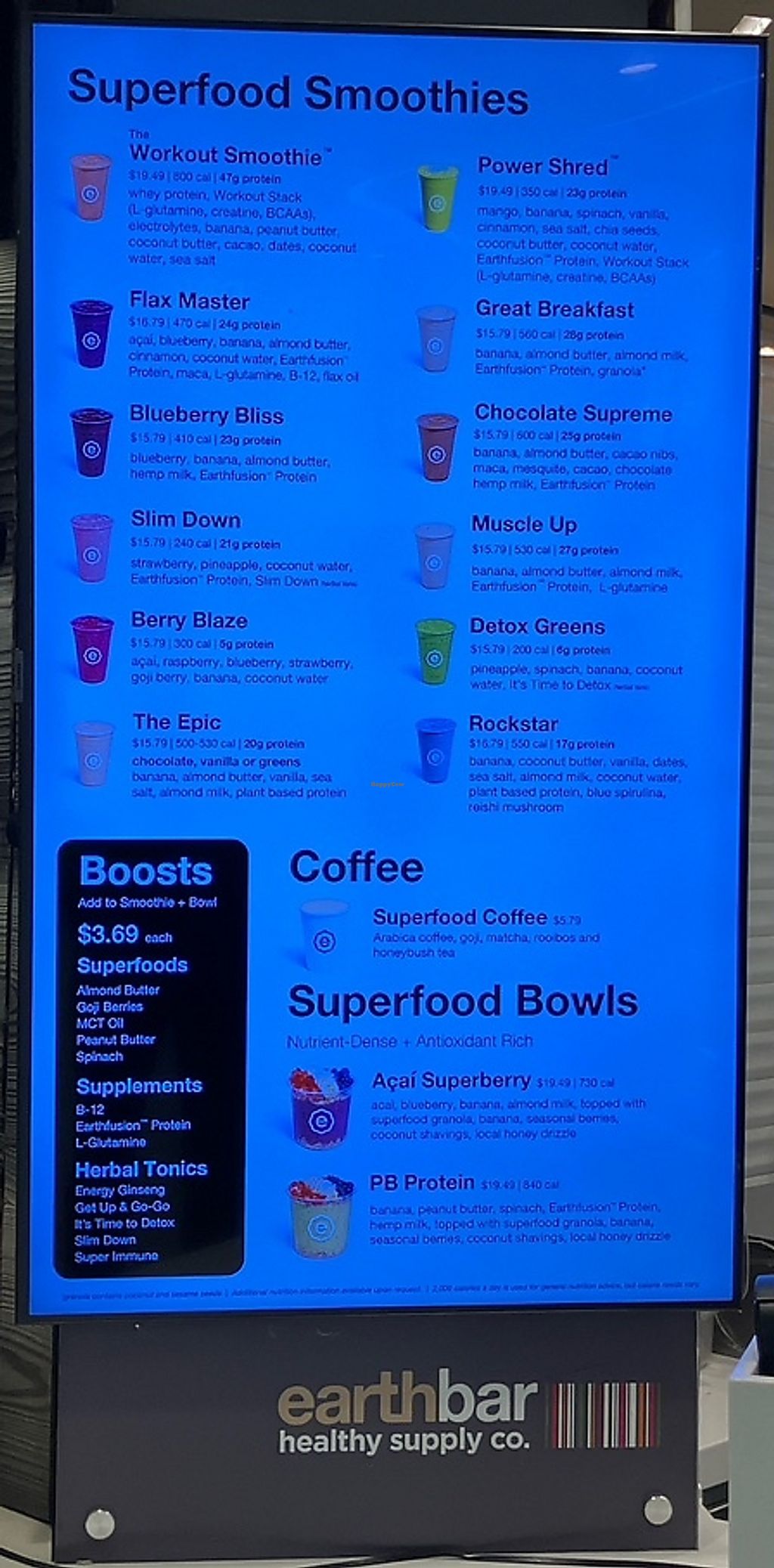 Read moreSome of their smoothies are vegan. I think their “earthfusion” protein is vegan based on some of the labels but it’s pretty hard to tell & I couldn’t ask because it’s all through a screen. You can’t order a custom smoothie because they only accept orders through the screen. Maybe this is different at other times of day as I was there when they opened at 5:30AM.