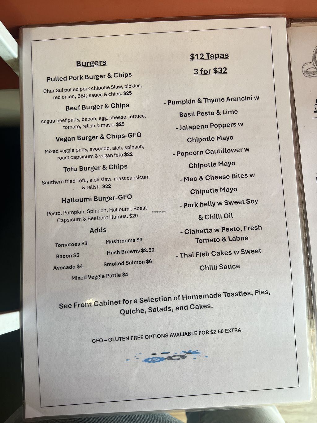 Menu had a lot of options which was great to see! Also had a vegan toastie in the cabinet. Food was tasty and staff were nice.