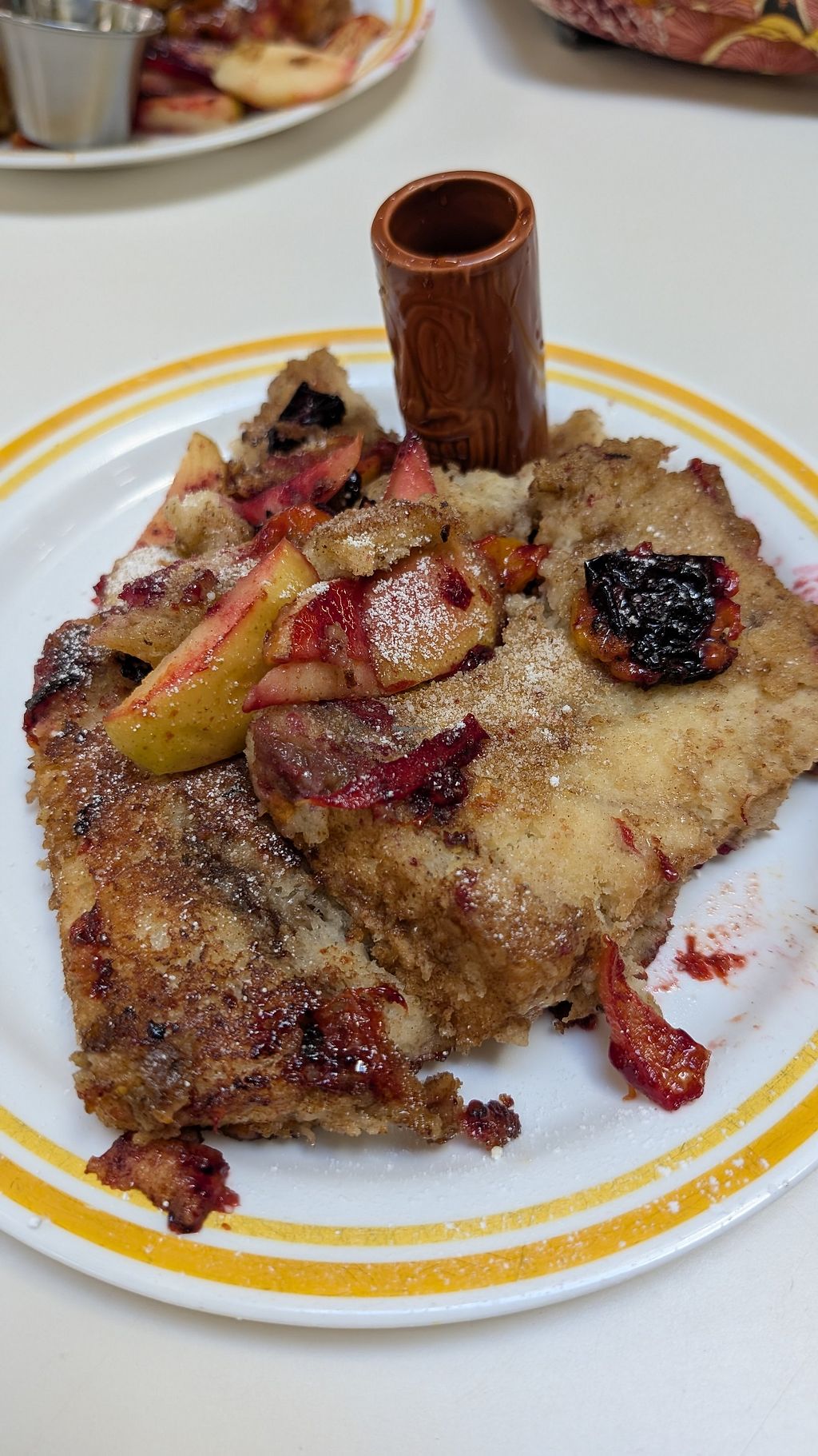 Read moreWe had pear cinnamon bread french toast with local apples, plums, and pears.