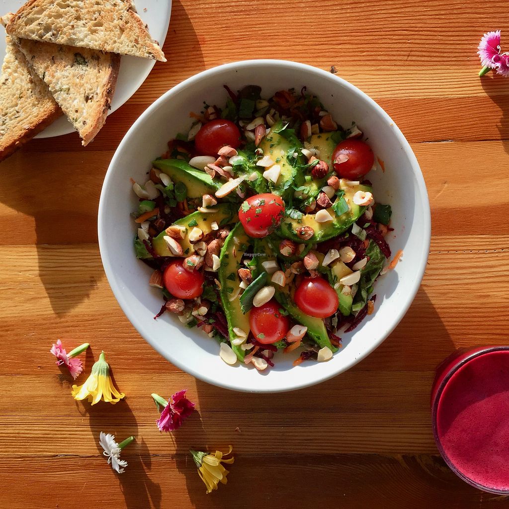 Read moreThere were so many vegan choices that made the selection of lunch fun, and we settled on two different salad bowls- one raw, and one with marinated tofu. Both were pleasantly presented, and deliciously seasoned. The dressings were so tasty. We also ordered vegan shakes or smoothies, which were wonderful and filling.