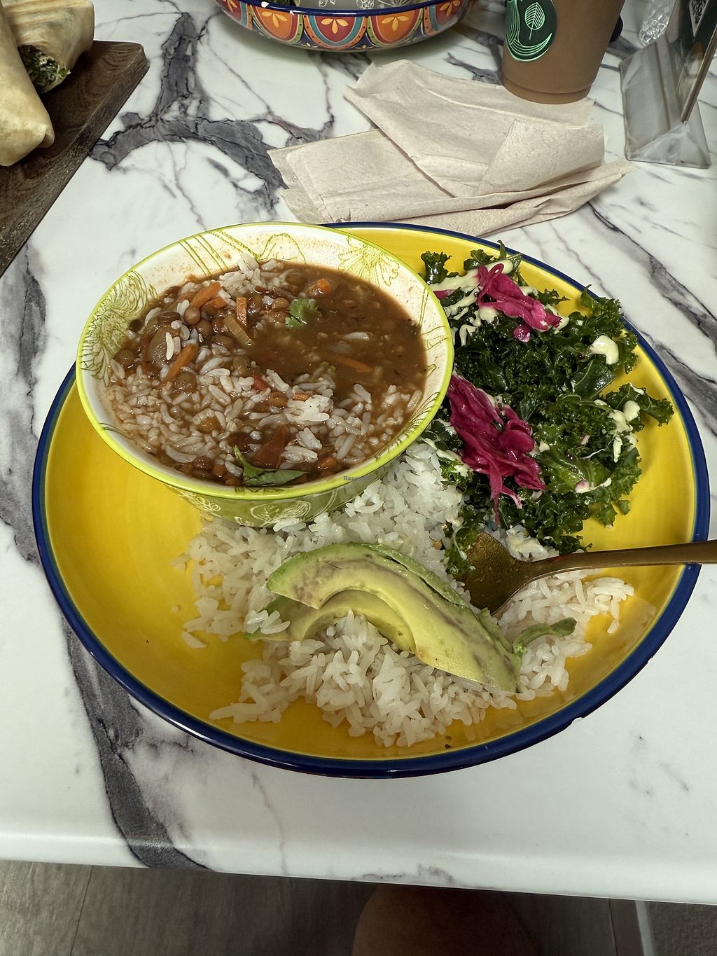 Delicious food and drinks! The lentil soup with rice and kale was excellent.