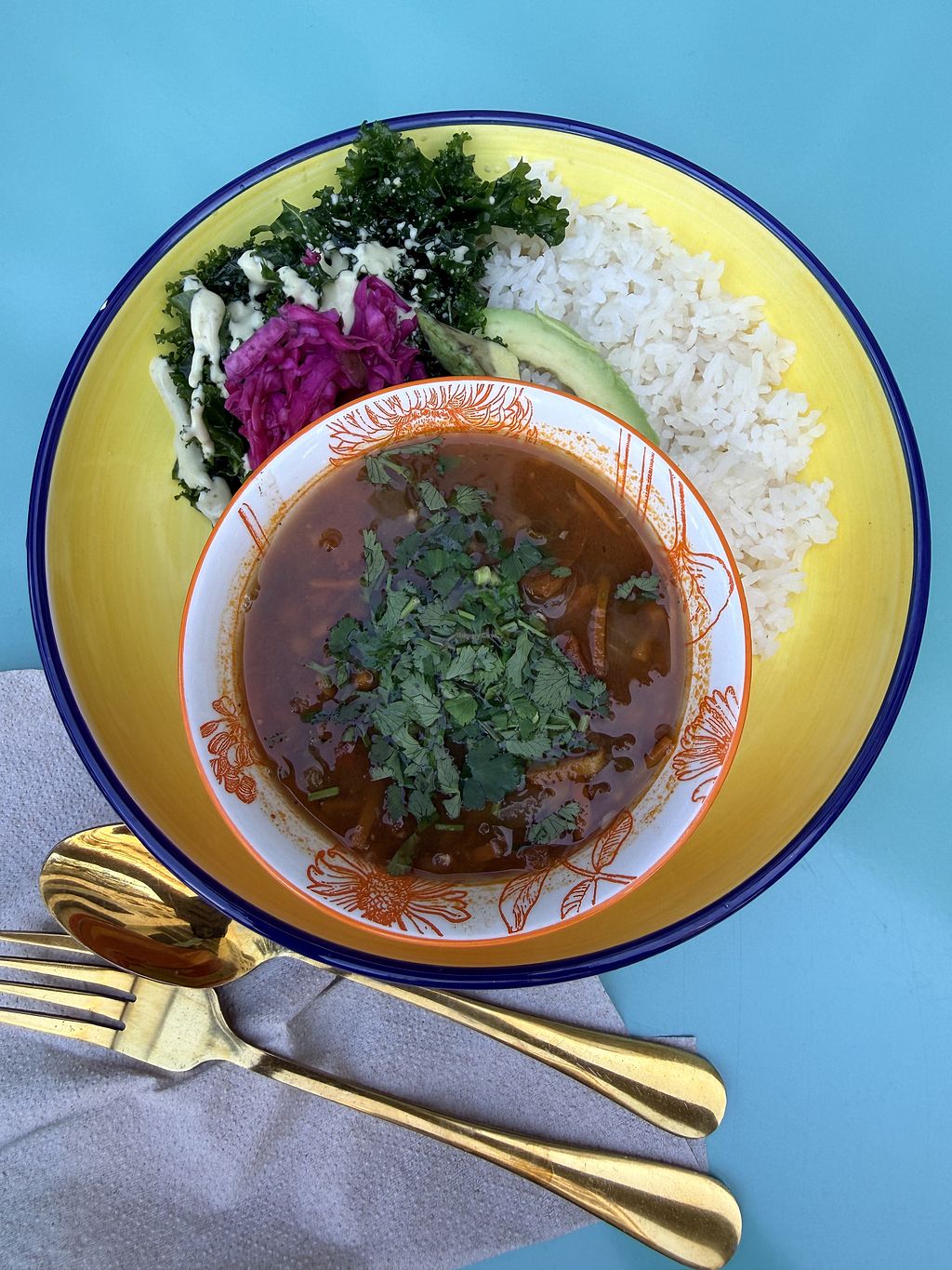 Delicious food and drinks! The lentil soup with rice and kale was excellent.