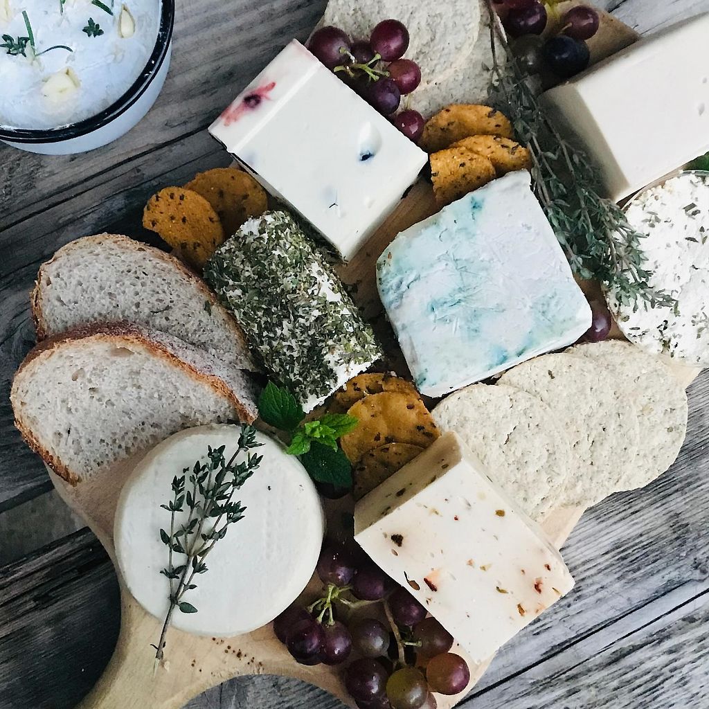 Vegan business offering artisanal plant-based cheeses using organic nuts and beans, including fermented cashew cheeses (cultured nut-based cheese), soya milk cheeses (plant-based cheese alternative), and cheese boards (assorted vegan cheeses for serving). Open Sat-Sun 09:00-16:00. Closed Mon. to Fri. | Confirm hours via social media