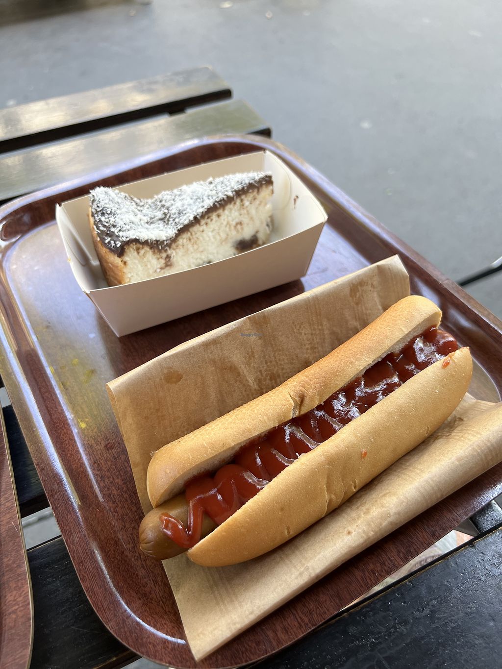 Hot dog & coconut/chocolate cheesecake
