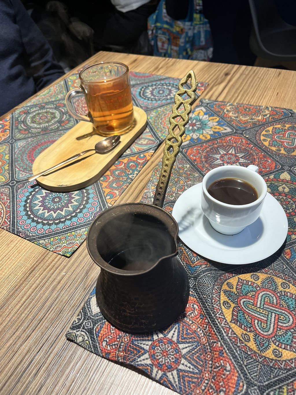 Supergezellige plaats waar je in een heel huiselijke, gezellige omgeving lekker kan eten. We werden warm verwelkomd en bestelden Syrische thee en koffie. De koffie was
