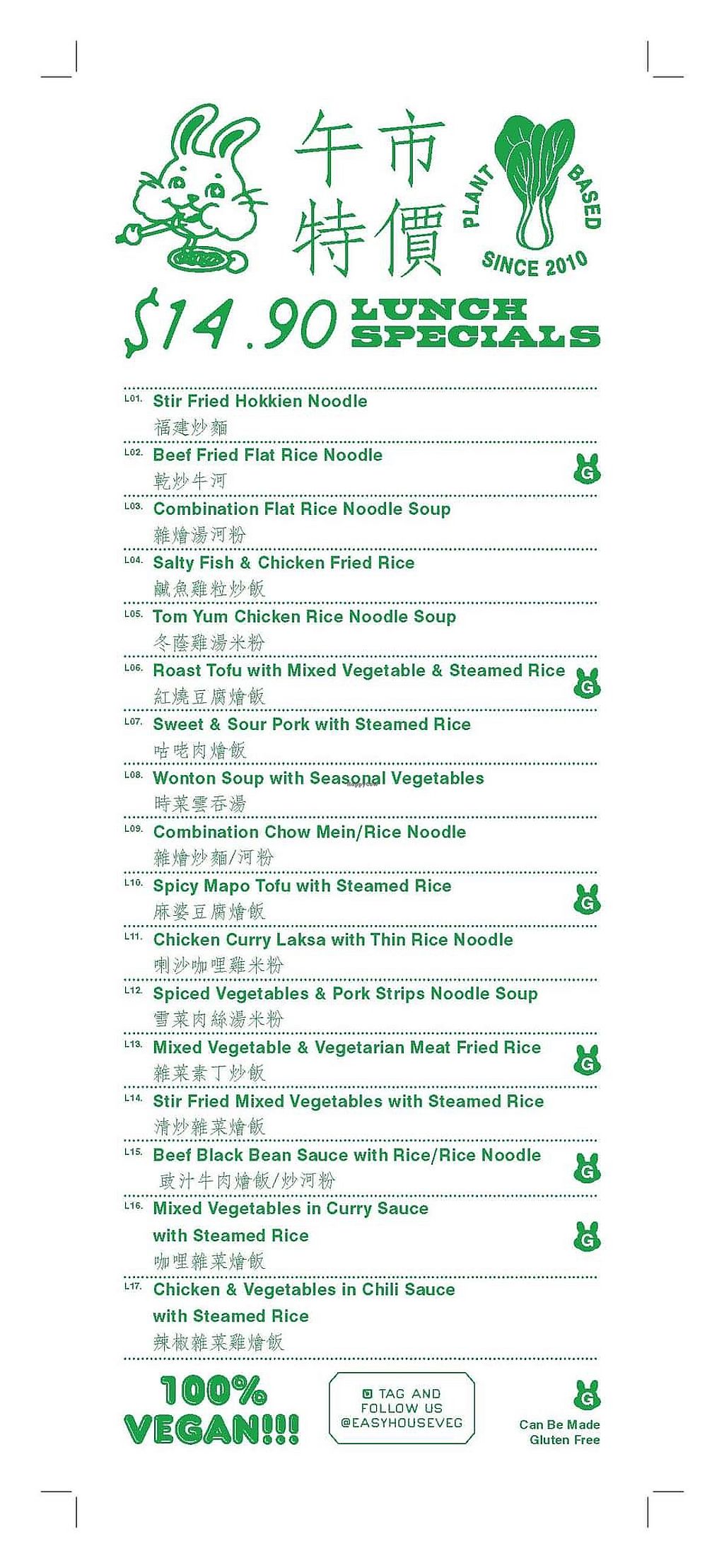 Lunch special menu