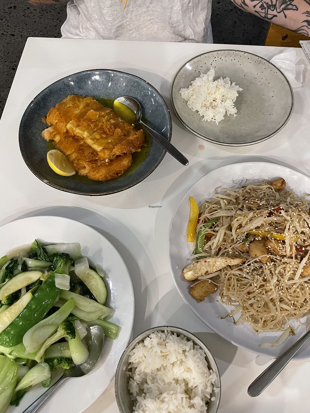 Takeout to eat in our hotel room - combination fried rice, tofu curry,…