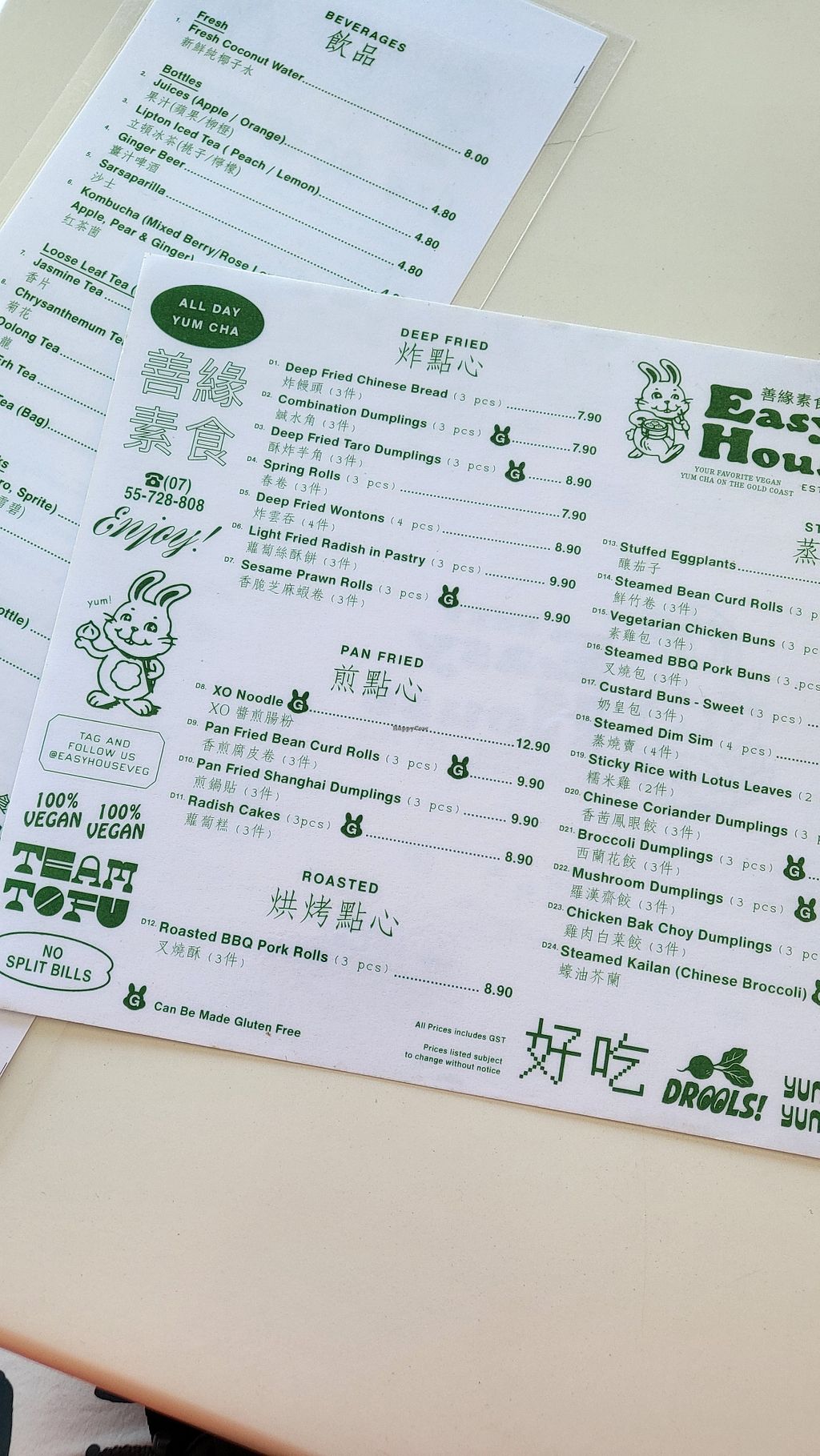 Yum cha menu