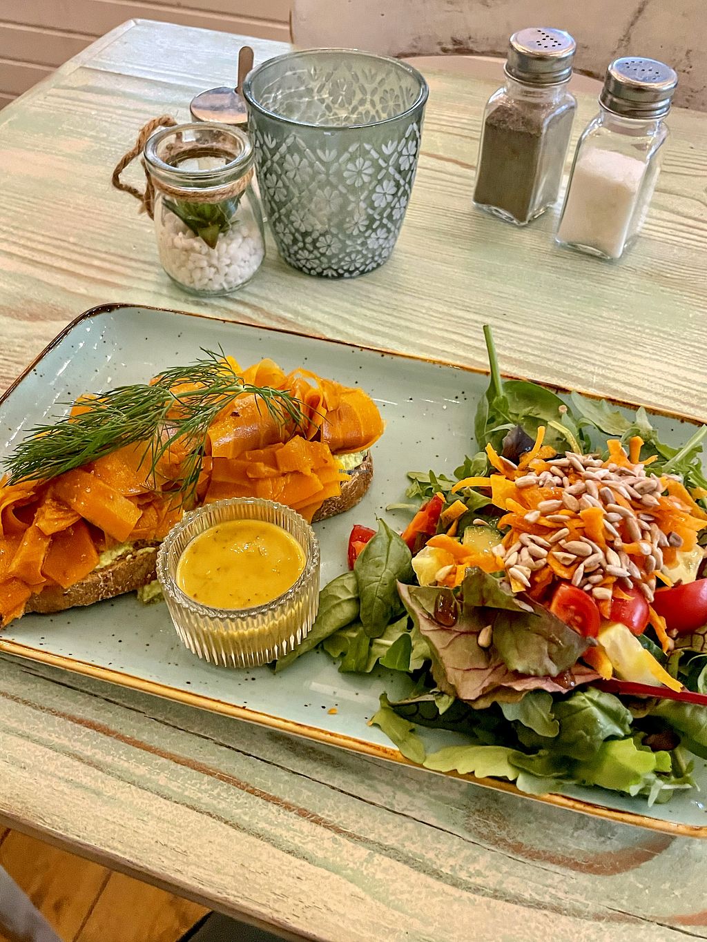 A truly exceptional gluten free vegan cafe. High quality food, beautiful presentation, very friendly vibes. Really nice decor. Recommended! Be sure to try the chicpea omelette, you’ll thank yourself later…