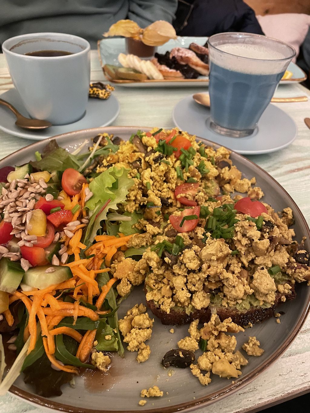 I liked the tofu Scramble on toast, but it didn't blow my mind. The grilled cheeze was a bit more special for me. Their sweets are also really yummy. I love that they are catering for gf and vg people, but unfortunately most of their dishes are made with soy, which makes it difficult for one of my friends and maybe others.