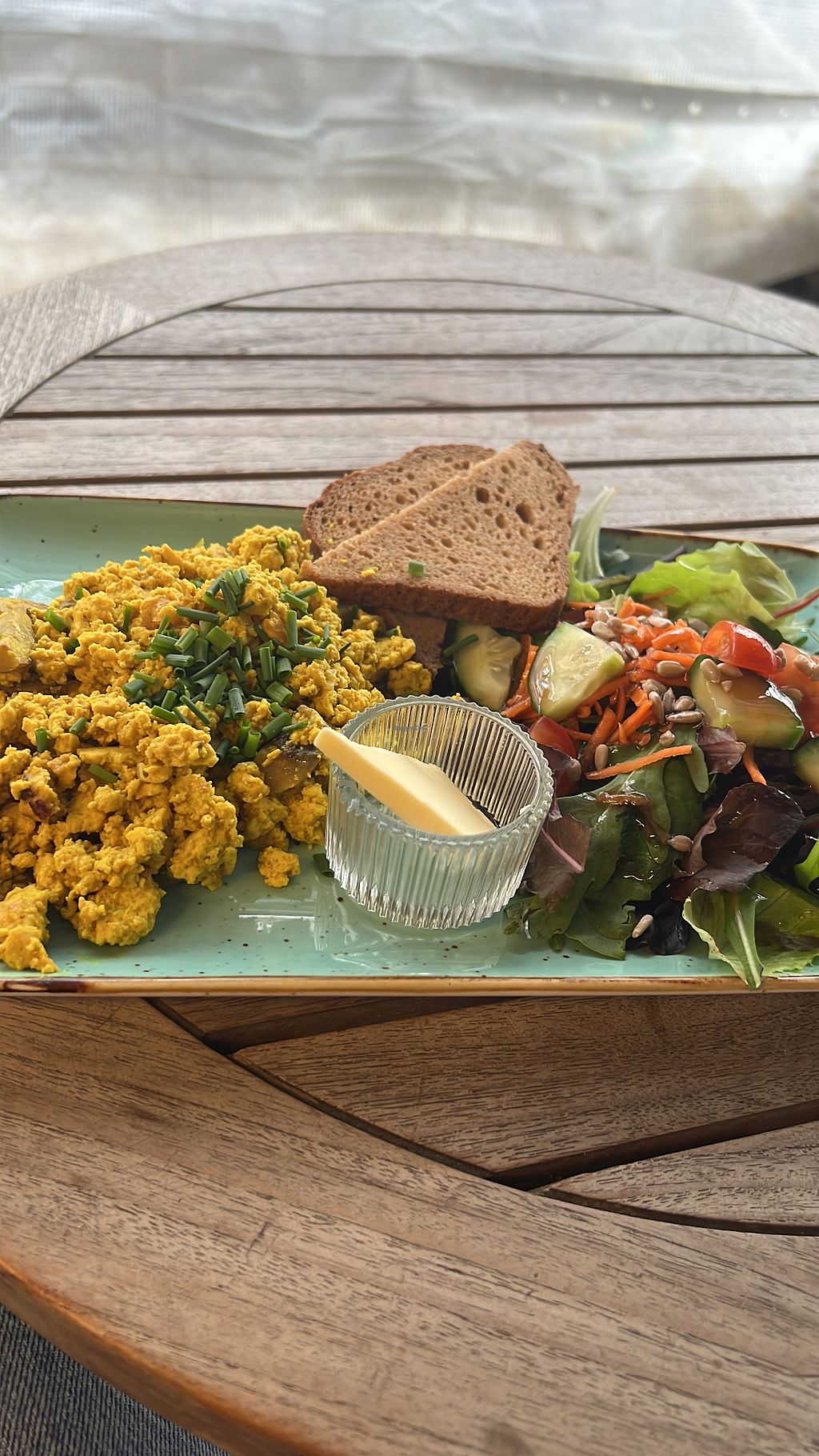 EasyPeasy is a very cosy vegan spot with a relaxed atmosphere, and the team is super friendly. We had a waffle with lemon curd (really tasty and fresh) and the Easy Peasy dish with scrambled tofu and bread. Both were absolutely delicious. A lovely place to sit back, enjoy your food, and highly recommended.