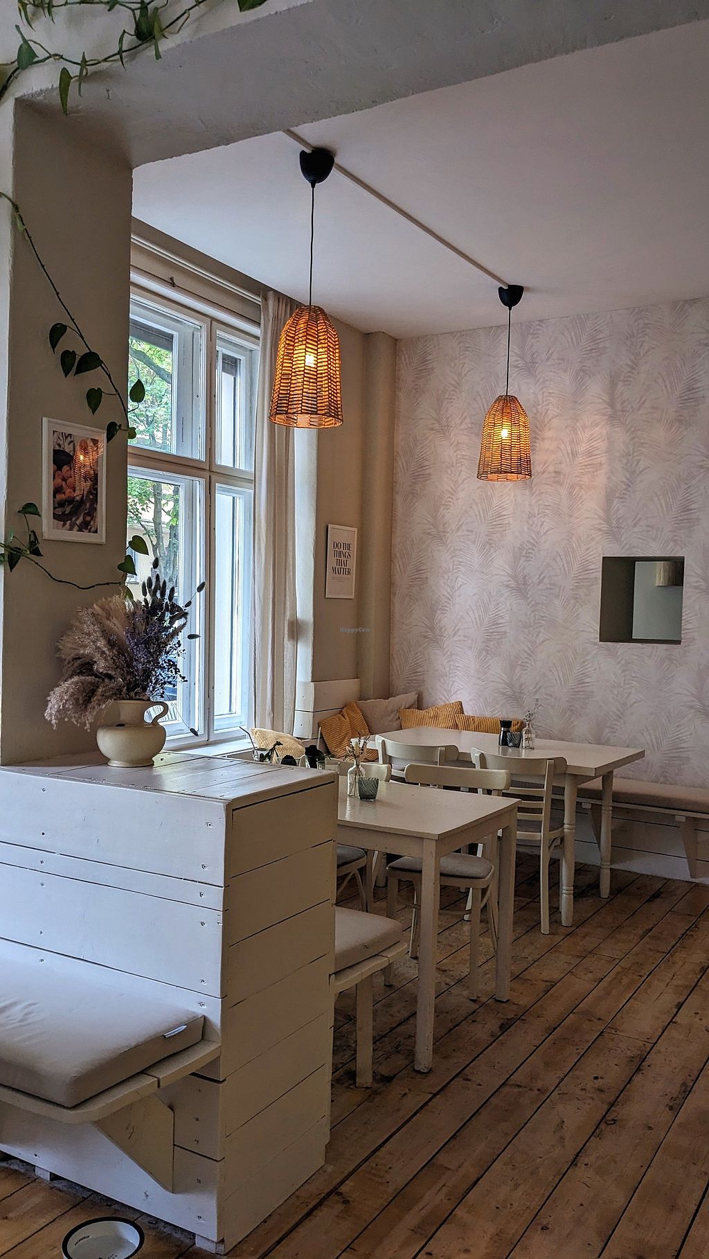 Vegan and gluten free café and brunch restaurant. Choices include grilled cheese sandwich, bowls, waffles, smoothies, soups, cakes, and baked goods. The kitchen is entirely gluten-free. Relocated from Niederbarnimstraße 16. Companion animal friendly. Kitchen open 10am-3pm, and 6-9pm Fri-Sat. Waffles available until 5pm. Open Mon-Sun 09:00-16:30. Kitchen closes at 3pm, waffles until 4pm.