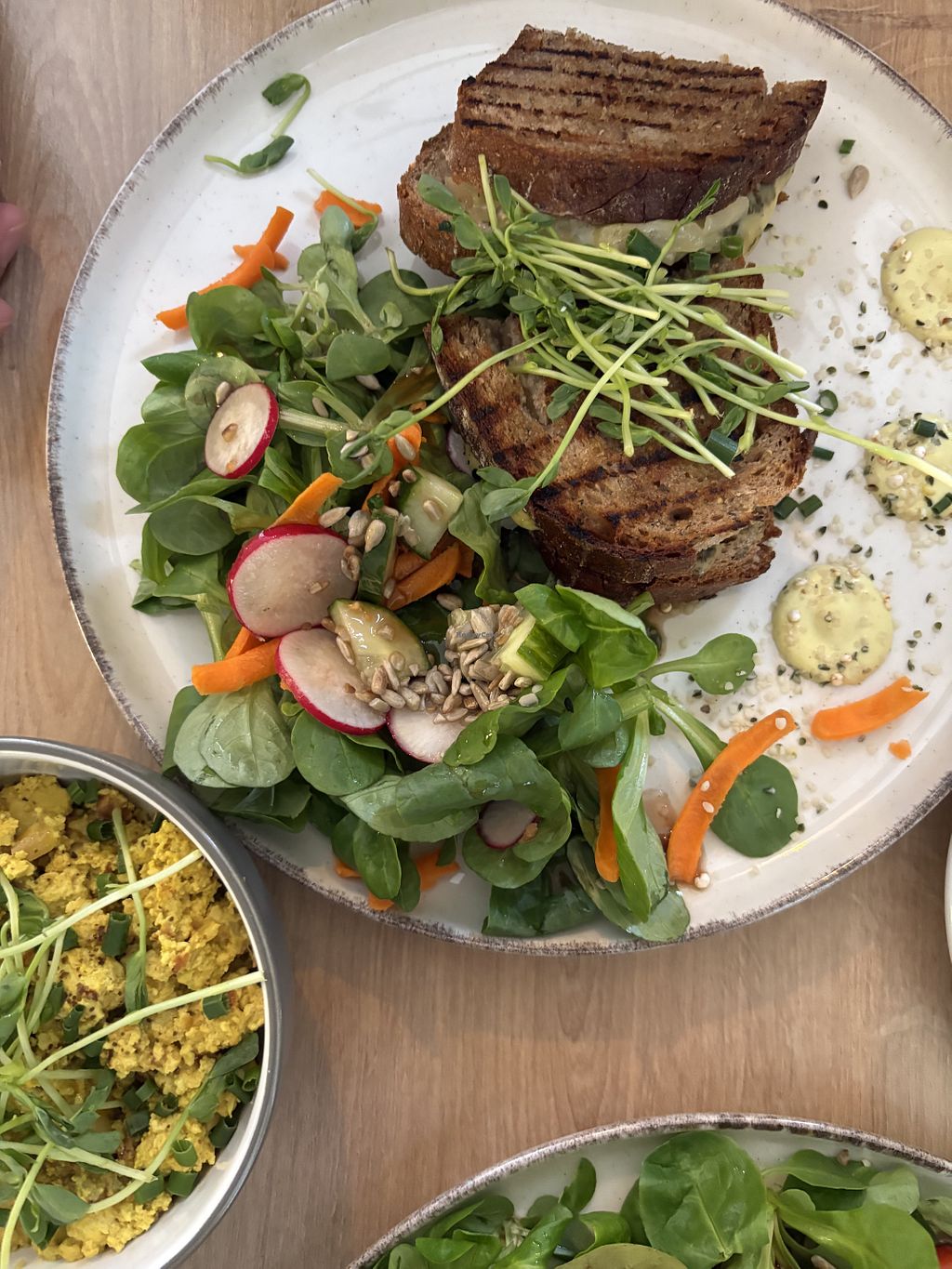 Sehr sehr leckeres Frühstück. Scrambled Tofu, Omelette und besonders das grilled cheese hat es uns angetan.