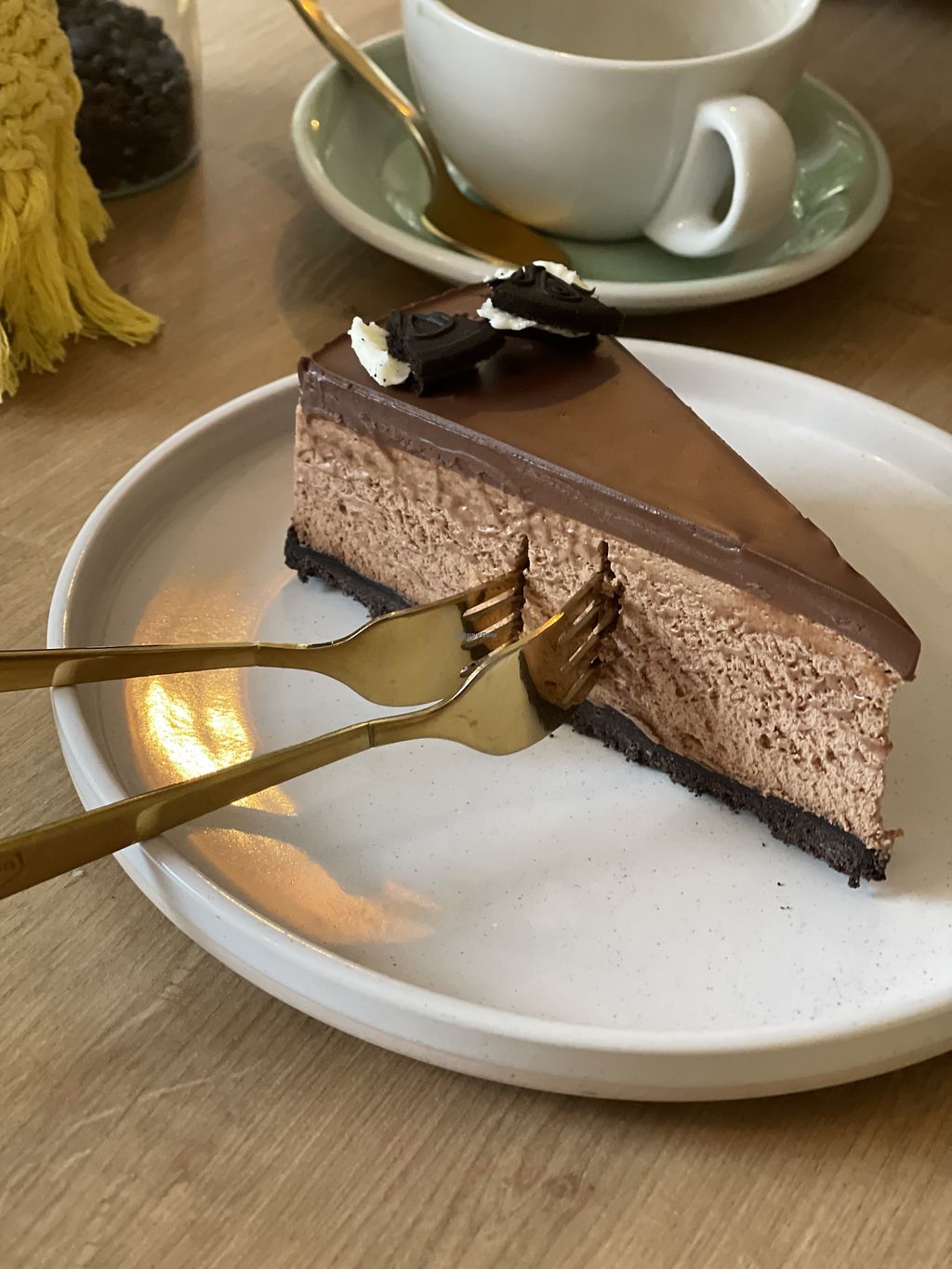 Wir haben ein Omelette, eine Herzhafte Waffel, dazu einen Green FocusLatte und Cappuccino bestellt, und am Ende noch zwei Desserts – einen Blueberry-Cheesecake und einen Oreo-Cheesecake. Alles war unglaublich lecker, aber besonders das Omelette und der Blueberry-Cheesecake waren herausragend. Das war einfach unglaublich köstlich, wirklich 10 von 10! Außerdem war es im Café sehr gemütlich.