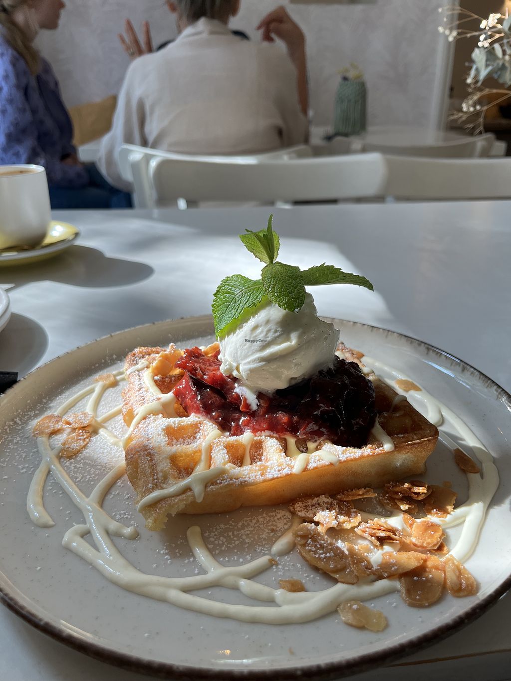 Unfortunately when we came around 14 a few dishes on the menu were already sold out, which was a bummer as we came here for the gluten free bread. But what we had was tasty. We also shared a waffle and an Oreo cheesecake afterwards - both yummy!