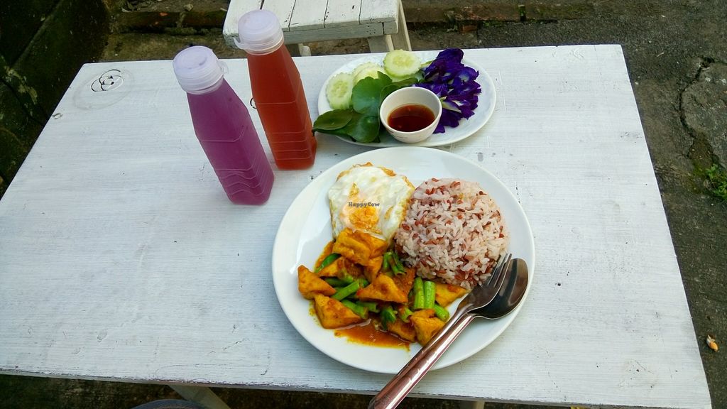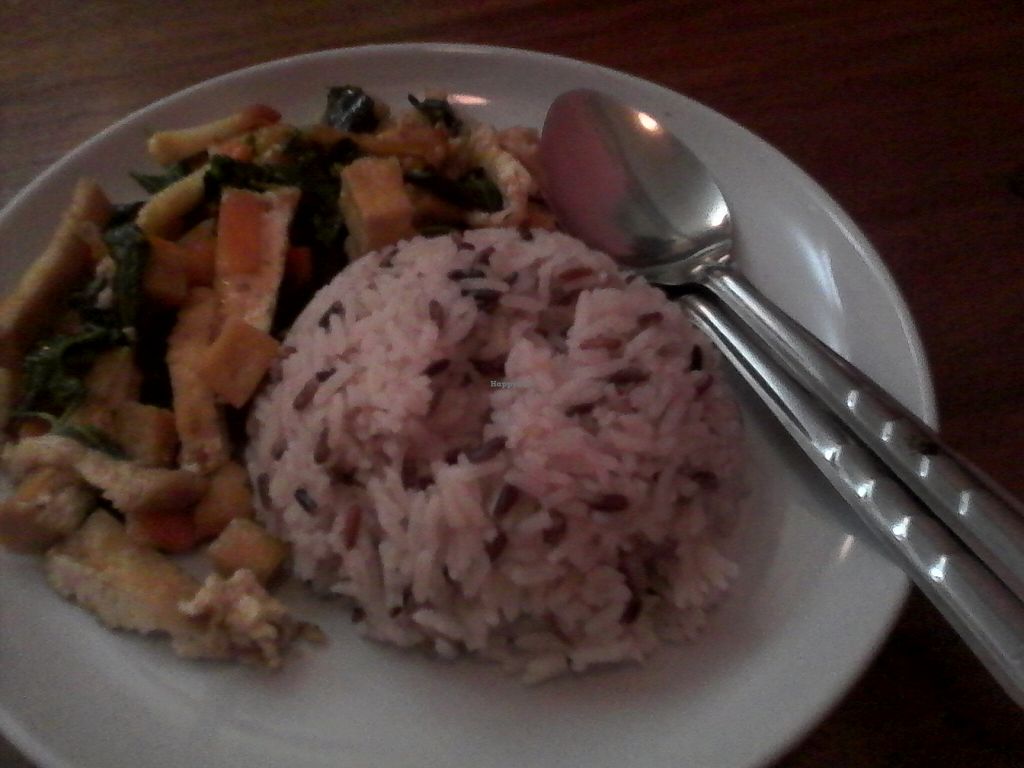 Vegan/vegetarian menu, including organic homegrown herbs, organic thai red rice and a really good homemade drink made with 9 different kinds of rice (must try). Really nice and relaxed setting, with a backyard open area protected by a magnificent tree. Cheap, good and healthy food and a really friendly staff, definitely recommended.