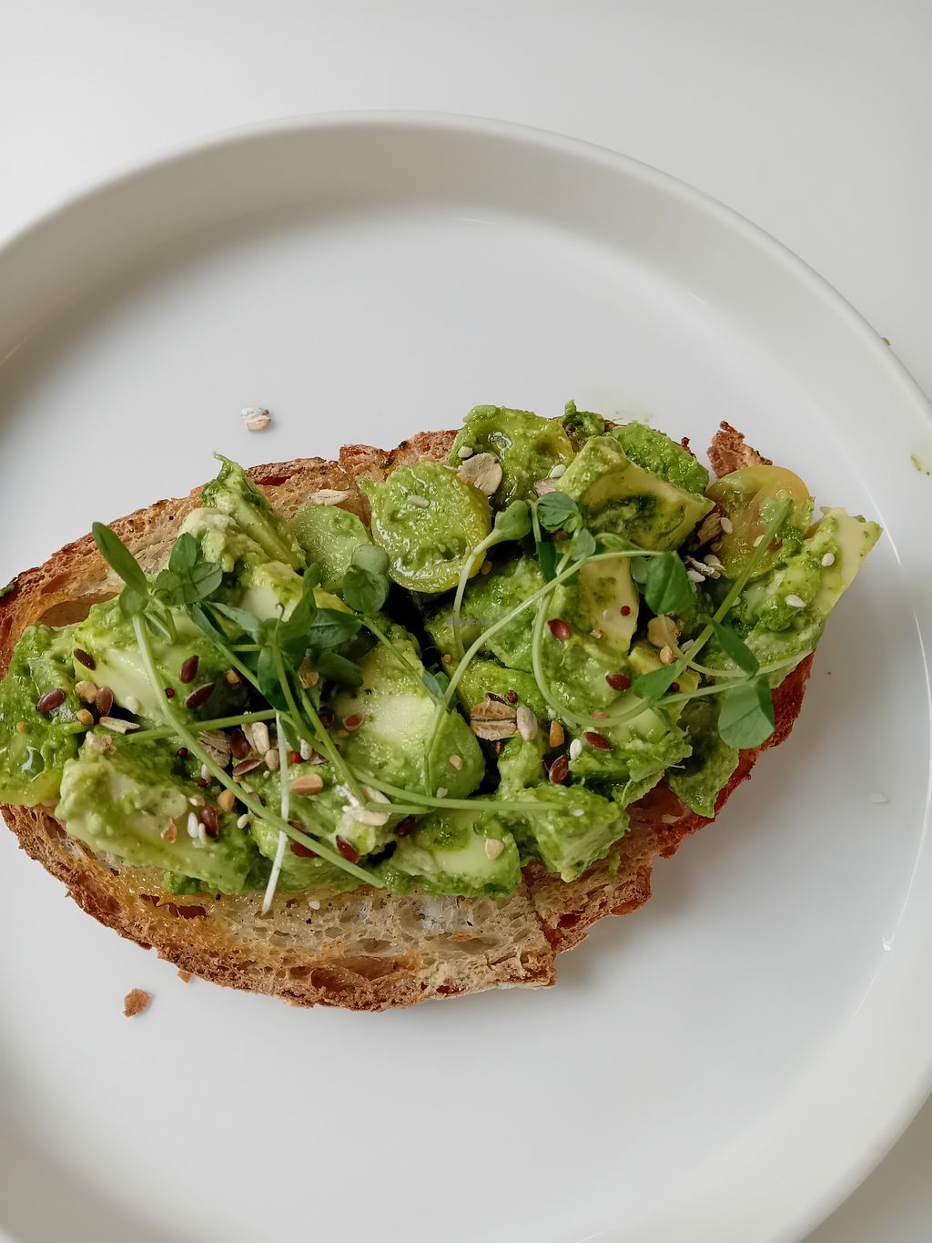 Serves meat, vegan options available. Fresh and minimalist cafe serving homemade light meals. Vegan options include various salads, avocado on toast, milkshakes, fruit platter, waffles, pancakes, hash browns, and wraps. Open Mon-Sun 7:00am-12:30am.