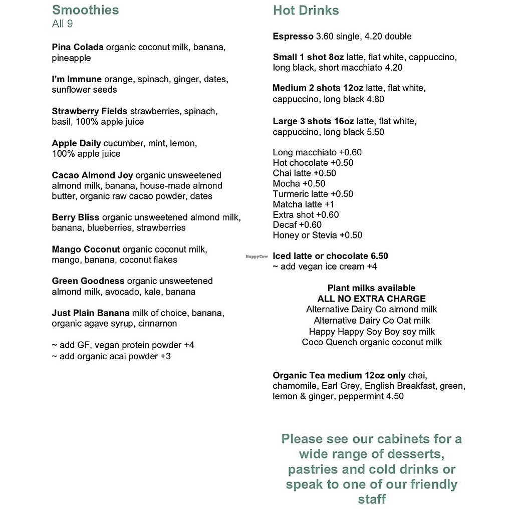 1. Acai Smoothie Bowl AUD15 Organic almond milk, strawberries, banana,…