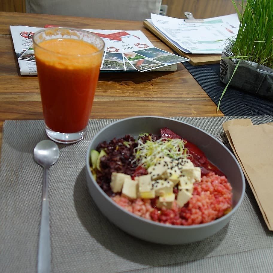 Vegan plat du jour and juice of the day “made with love” ❤️