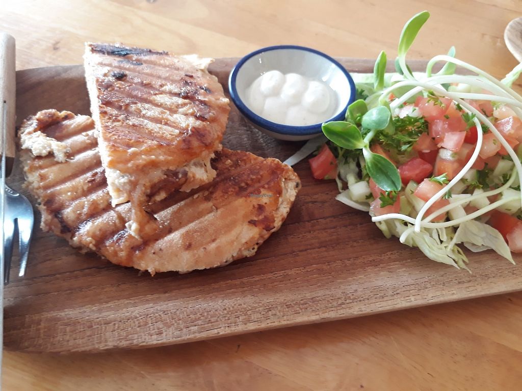 Tofu no egg mayo toast with omnipork sausage and avocado