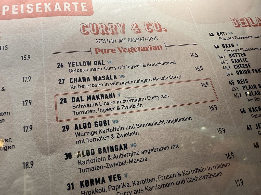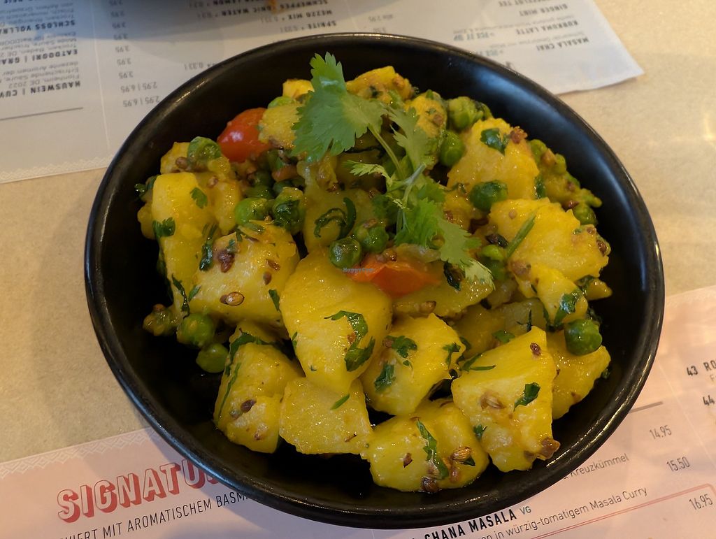 Serves meat, vegan options available. Moderne indische küche. Indian restaurants offering typical dishes, including labeled vegan options for starters and mains. Thali lunch which can be vegan upon request. Open Mon-Sun 11:30-23:00.