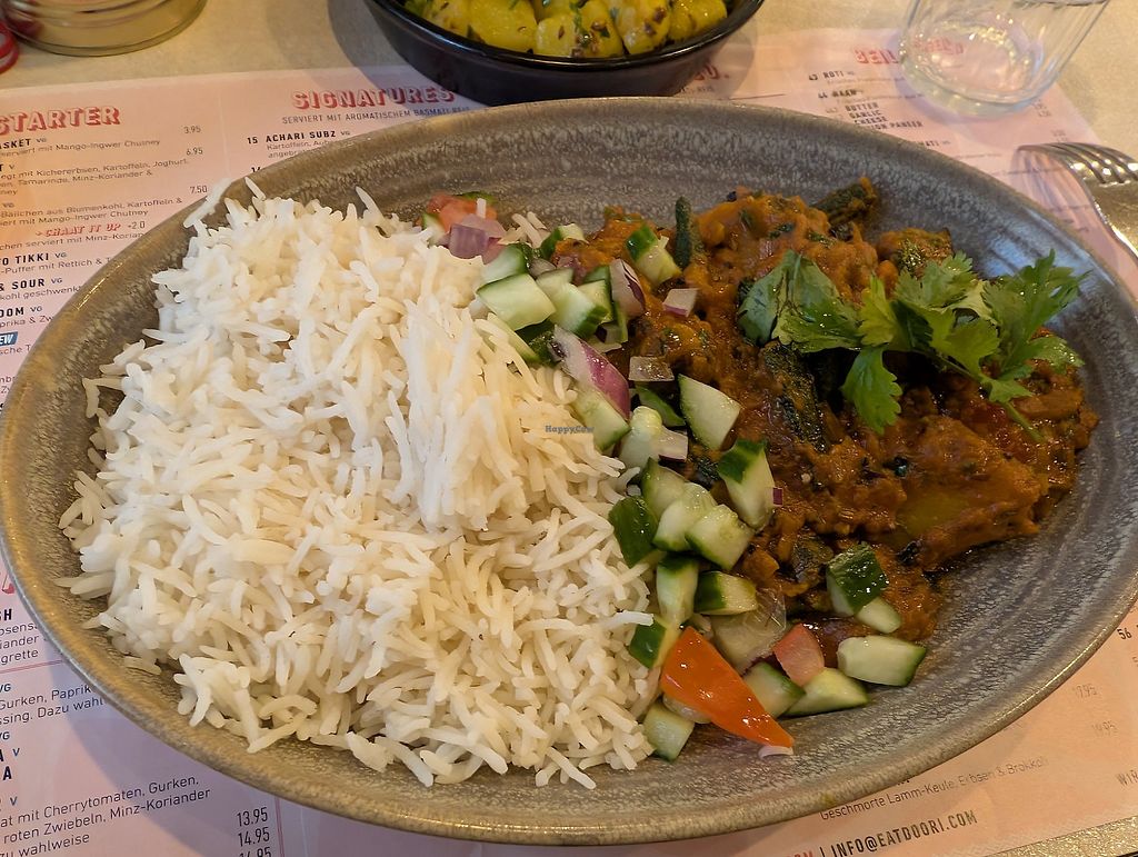 It is not too difficult to find an Indian place which can prepare their food vegan, but eatdoori is one of the few which actually labels some of their items as vegan, which I like. There is not a huge selection for vegans, but both their vegetable and their chickpea curry are really nice (even though pretty standard and basic north indian food). They also have some nice starters; in particular their pakora are quite good.