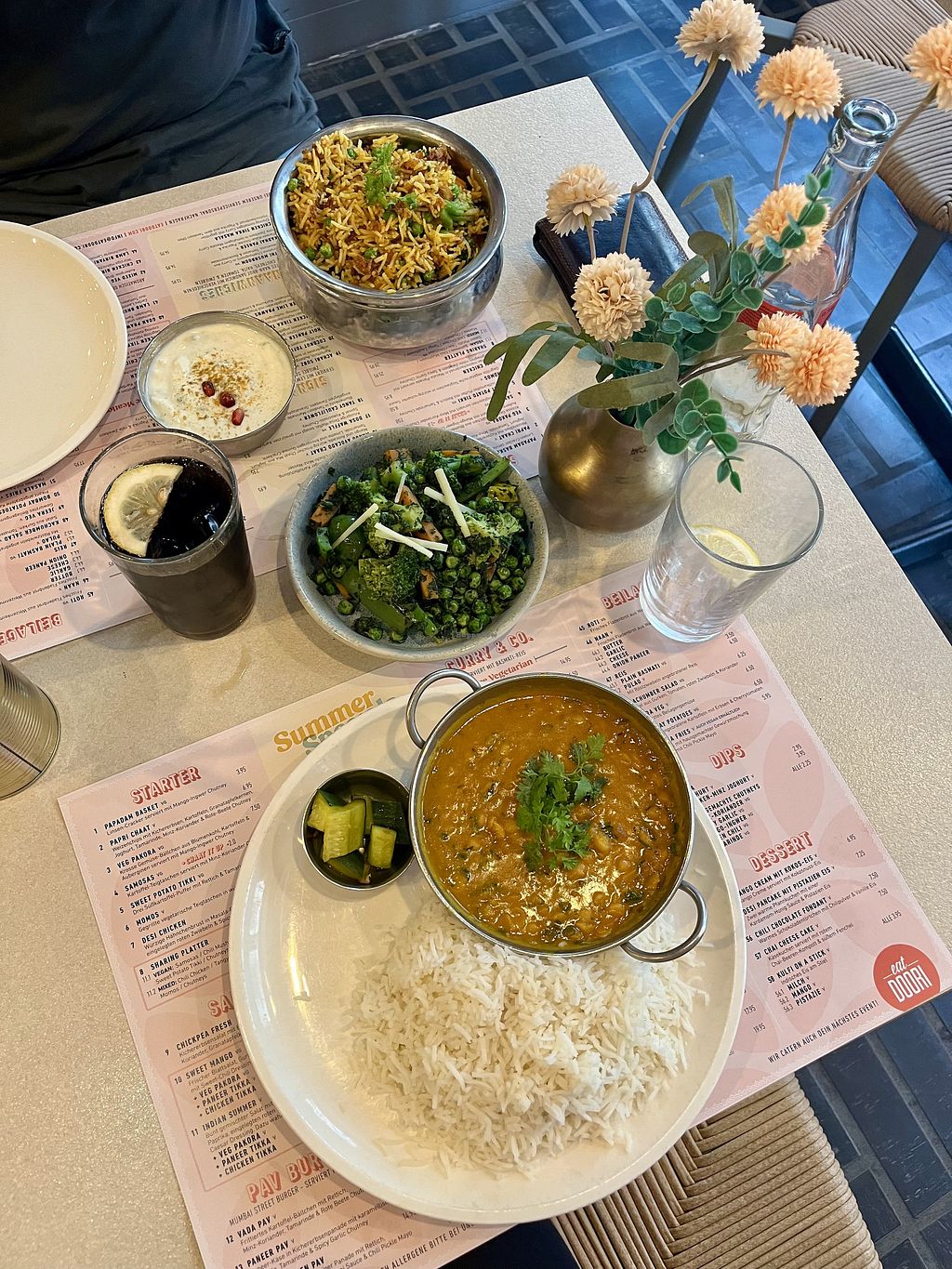 Große Auswahl an vegetarischen und veganen Gerichten und Starters. Wir haben uns aus mehreren Starters, Dip und Naan unser Essen gebaut. Toiletten sind jedoch sehr eng.