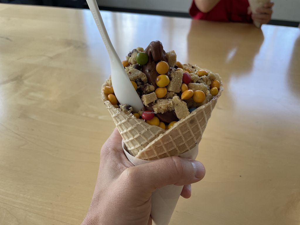 Stopped here a few times during my vacation! My favorite flavor was the chocolate pistachio, but everything I tried was delicious. They also had vegan waffle cones as one of the toppings!