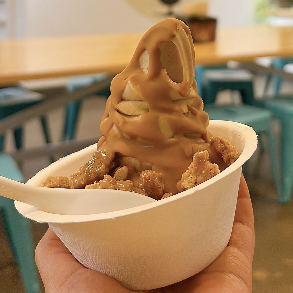 This is the absolute best vegan soft serve I have ever had. A MUST try if you're in Portland. They had 4 vegan flavors when I went which were Muscovado Blondie, Vanilla Roasted Macadamia, and Double Almond Marionberry (all almond-based) and then Chocolate Coconut (coconut-based). Pretty sure they rotate the flavors. They also have a huge variety of vegan toppings like cookie dough, waffle cone pieces, chocolate chips, marshmallows, coconut whipped cream, and so many more. They also have vegan sauces like chocolate, nutella, peanut butter, raspberry, and strawberry. The perfect vegan dessert spot!