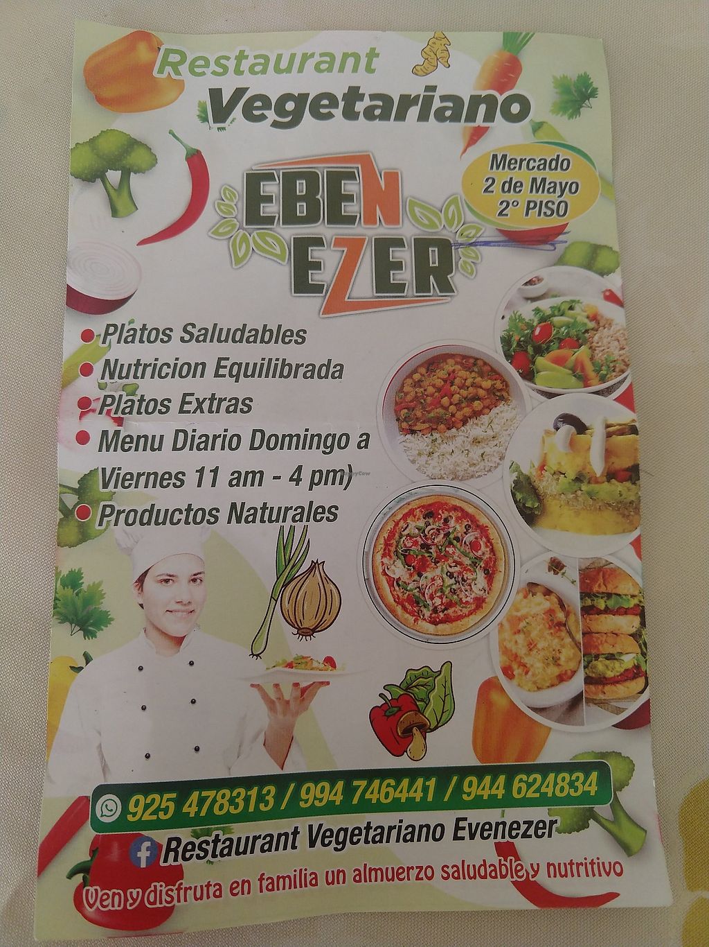 A vegetarian restaurant run by Seventh Day Adventists. Nearly everything is vegan although they apparently reserve the right to use eggs or milk because the restaurant is described as vegetarian. Market takes up a whole city block. Reach the second floor dining area through an easy-to-miss doorway that houses a stairway along Calle dos de Mayo near Avenida Patricio Melendez. A handful of other restaurants share the same common dining area with tables and chairs. Open Mon-Fri 11:00am-4:00pm, Sun 11:00am-4:00pm. Closed Sat.