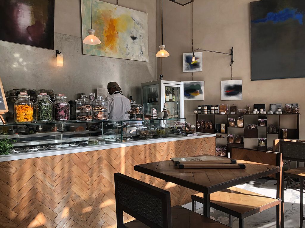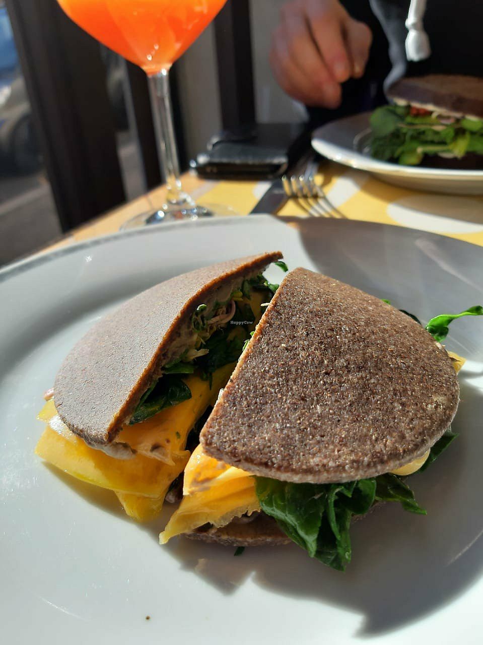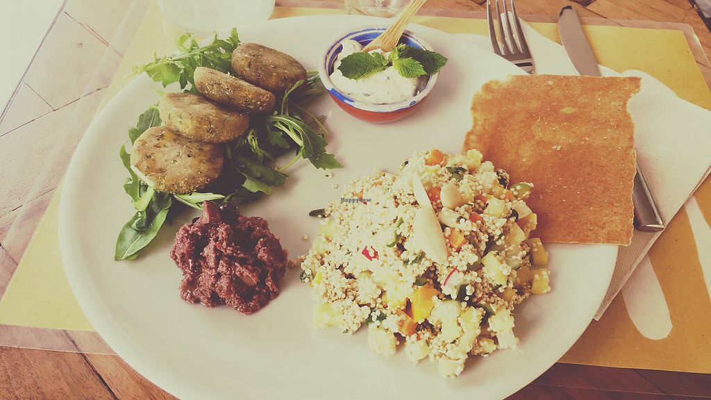 Vegan Burger, home made raw mustard, fermented cabbage cream, salad