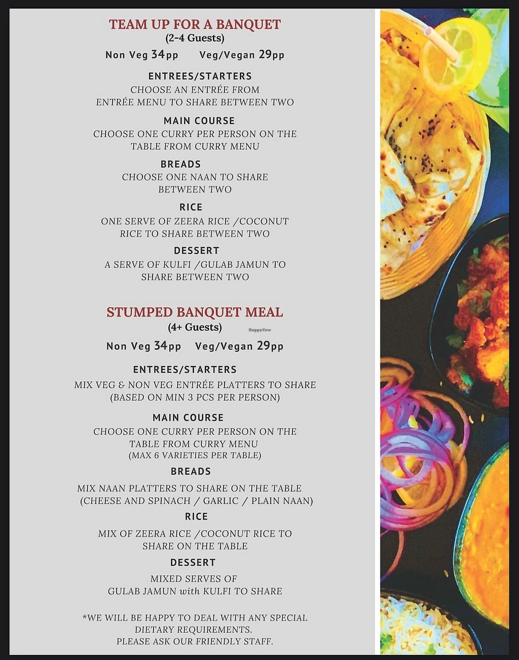 Extensive vegan section in menu. Delicious, some of the best Indian food I've tasted in Australia.