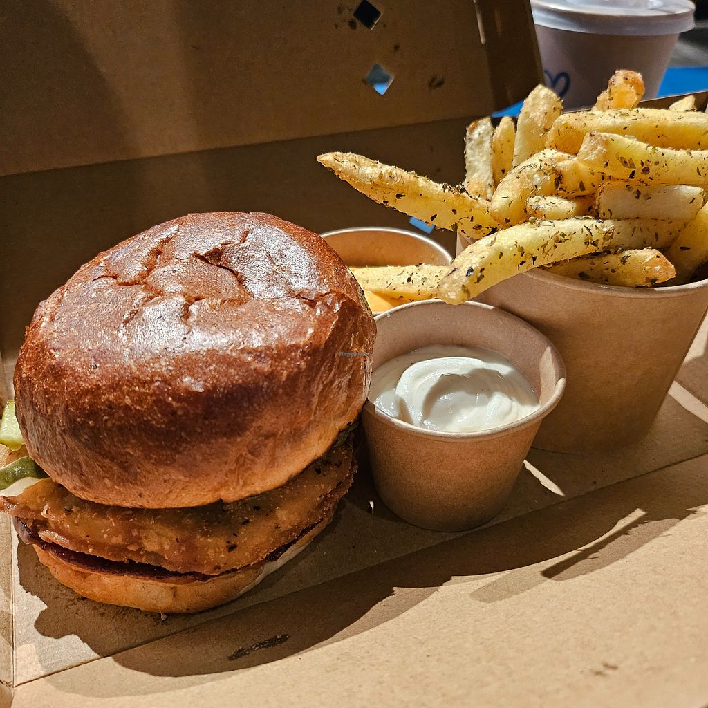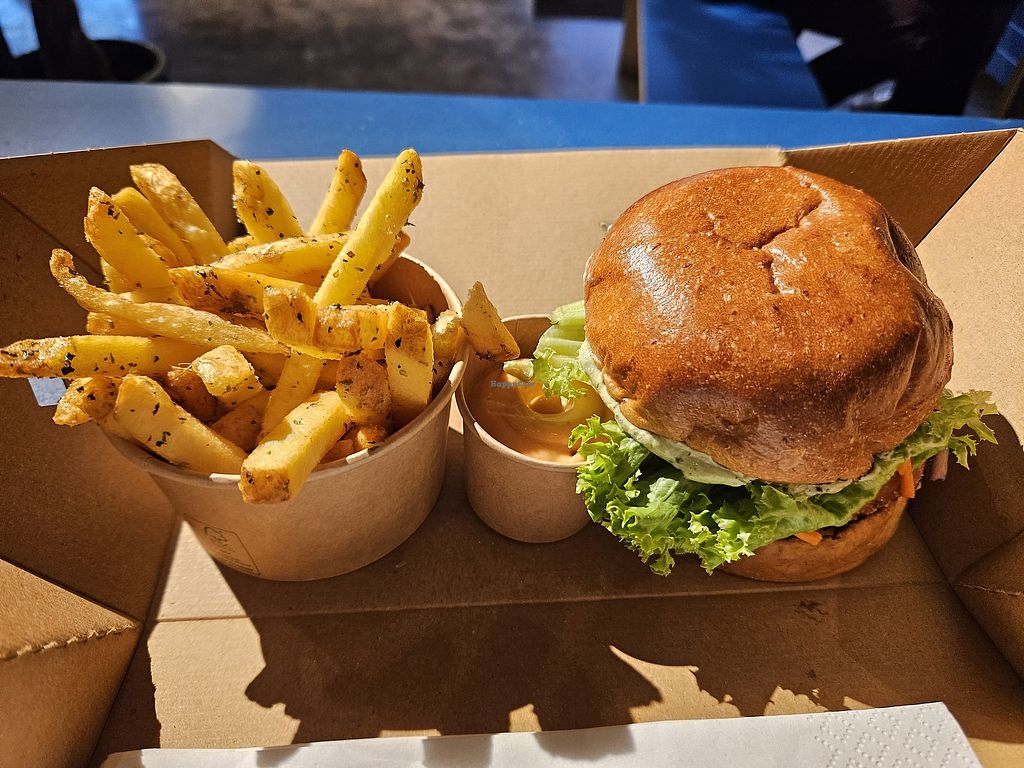 Had the beyond burger and fries. Excellent taste however buns a bit too big. Would still recommend and happily go again.