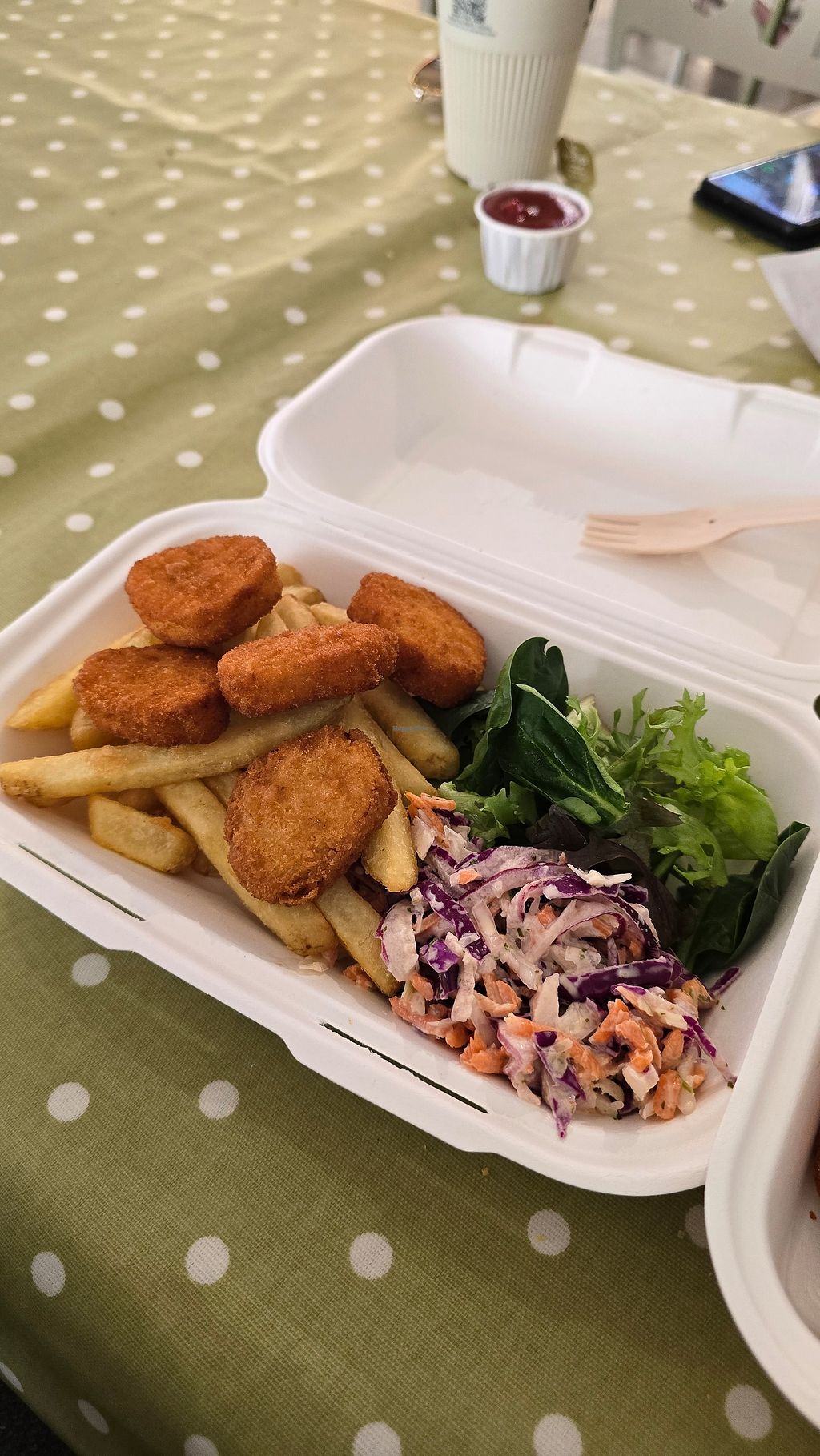 Had a chickpea curry which was fine, could of done with a bit more flavour. Loved the inclusion of the poppadom and mango chutney. Other choices including soup, salad, pasty. I also had an ice cream which they had about four choices the coconut and pineapple was really lovely (shame they didn't have a vegan cone) the person who served the ice cream had massive blobs of dairy ice cream from serving the rest of my party so I quickly asked if they wouldn't mind changing their gloves before scooping mine out.