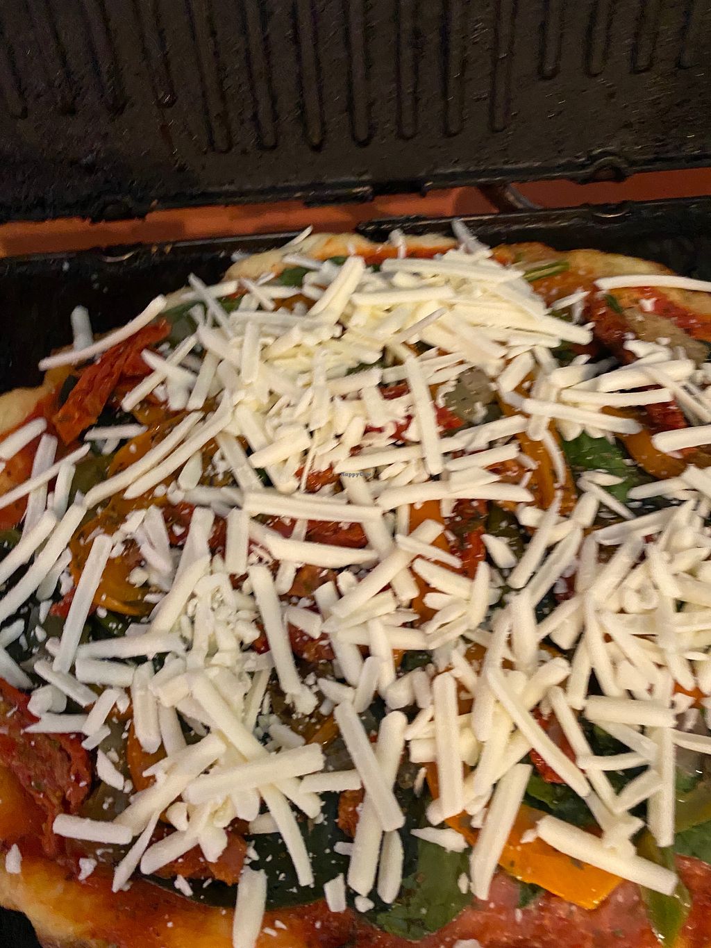 Oh wow vegan gluten-free pizzas sprinkled 100% vegan mozzarella cheese…