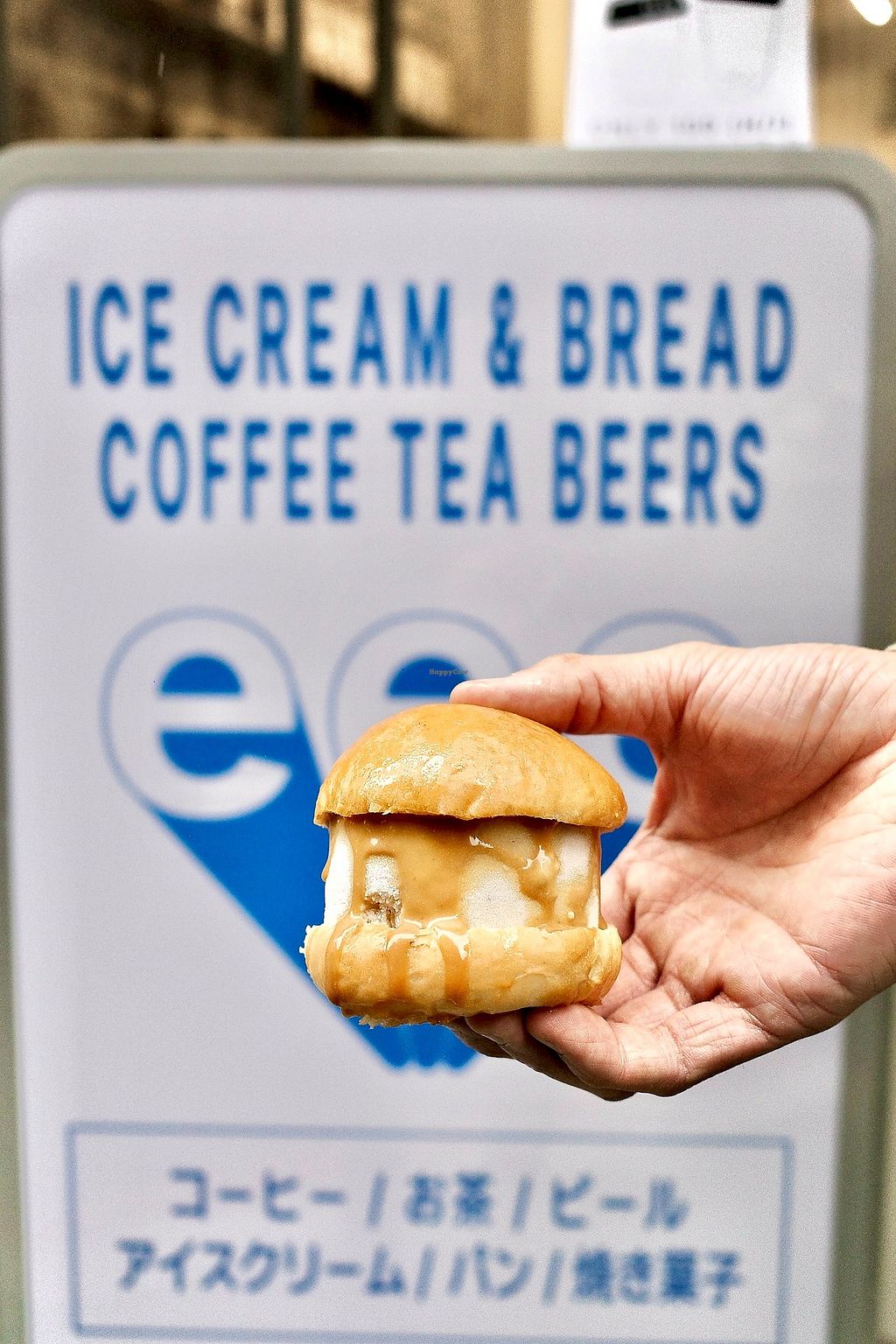 Ice cream burger with miso caramel sauce