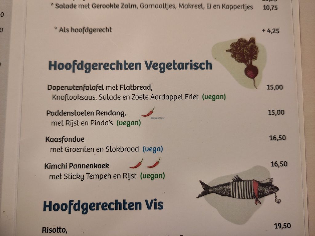 Serves meat, vegan options available. Offers vegan main dishes such as falafel with flatbread, mushroom rendang, and kimchi pancakes. Lunch options include tomato soup, a bun with grilled vegetables and hummus, and guacamole on a bun. Also provides vegan snacks and one vegan and gluten-free dessert. Open Mon-Wed 10:00-12:00, Thu-Sat 10:00-01:00, Sun 12:00-12:00.