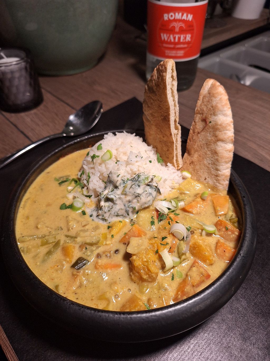 Only 2 vegan options on the menu for main course, so we chose one dish each: pumpkin pasta and pumpkin curry. Both were very tasty, portions were generous. Very cosy and welcoming atmosphere.