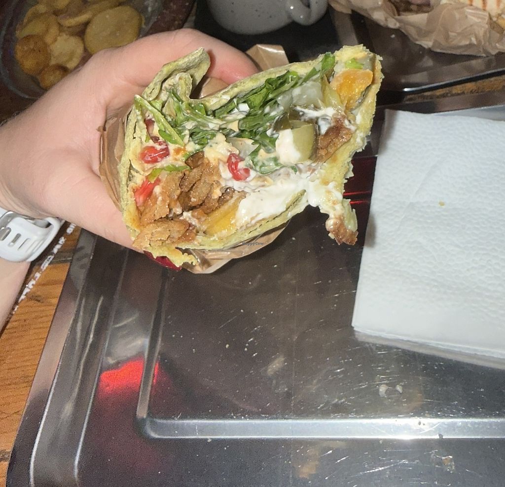 I loved the vegan meaty wrap from here. Lots of vegan options - very surprising from a kebab place!