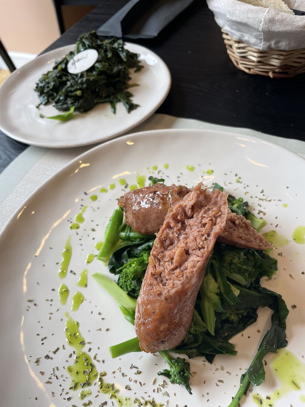 Sausage al forno with greens