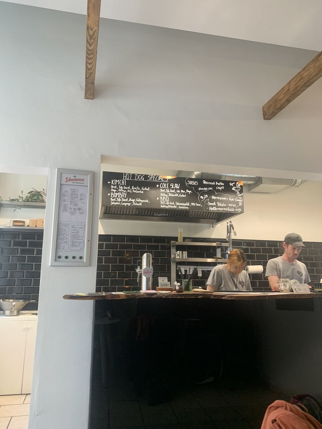 ich hab das hot dog probiert, war sehr lecker. brötchen leicht angetoastet und genau richtige menge toppings. ich hatte es to go, aber es gibt drinnen und draussen ein paar sitzplätze. war sicher nicht mein letzter besuch hier :)