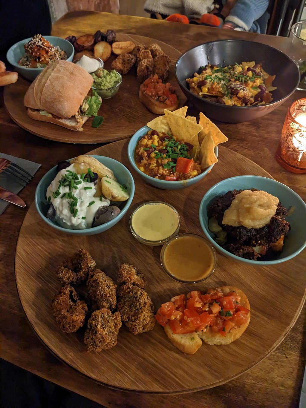 Wings, nuggets, Stullen, nachos, Bruschetta