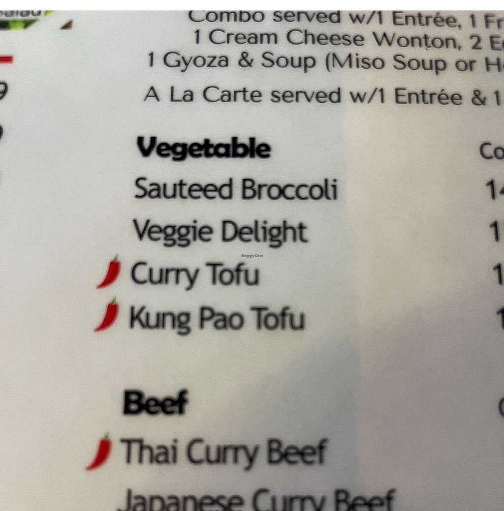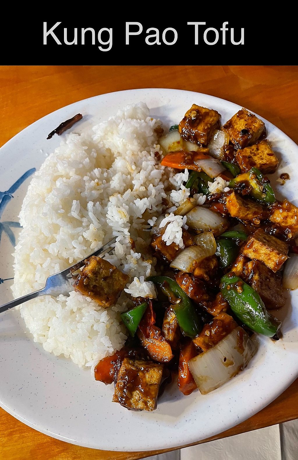 They had around 5 vegan rolls on the menu (2 fried) and a small Vegan section for entrees. The Golden Veggie Roll (fried) was very good. I really enjoyed the Kung Pao Tofu entree; it wasn’t too spicy and had a lot of flavor. The seaweed salad was fresh and very good, too.