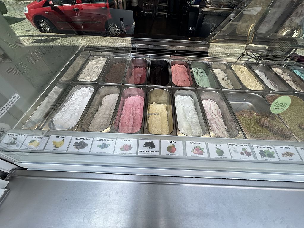 Two ice-cream flavors and coffee cost less than six euro. Very fair.