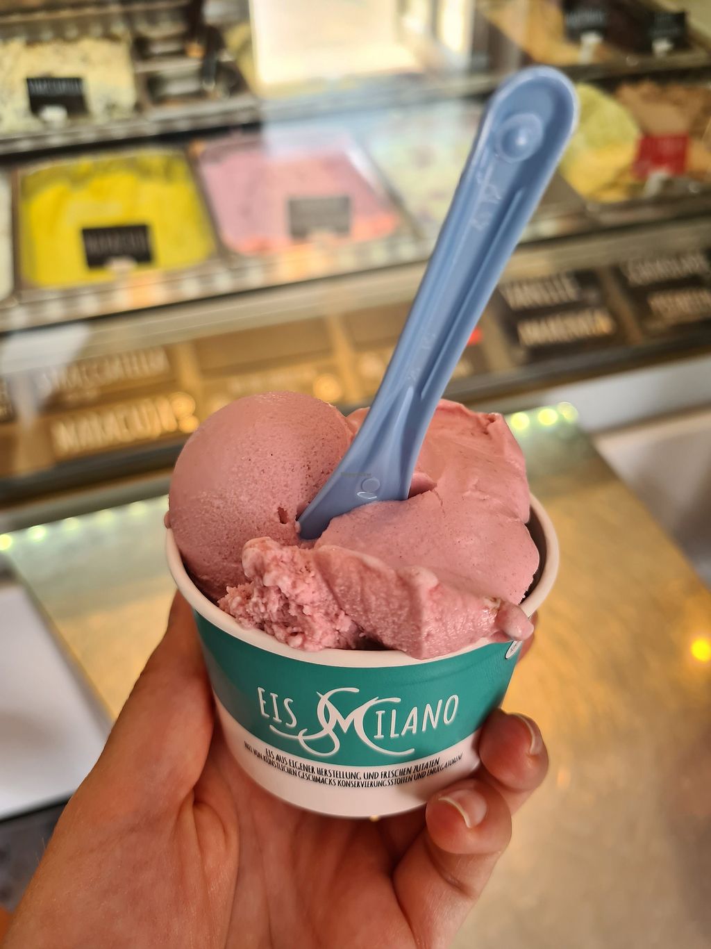 Es gibt viele leckere vegane Optionen (ca 6) und nicht nur Fruchteis. Das dunkle Schokoladeneis ist göttlich.