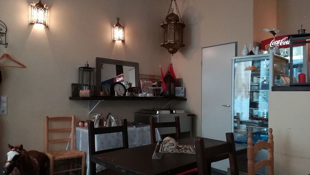 The maximum number of stars one can give a non-veg restaurant on this site is four - but I would give this place ten stars if I could. The food is delicious, the atmosphere charming and cosy, and the owner is lovely and super friendly. I've tried everything that's vegan on the menu, and it is all delicious, but my personal favourite dishes are the falafel plate with tahina sauce, and the okra stew. Also try the karkade - a sweet hibiscus tea. For dessert try a sweet couscous dish with nuts and a spiced mocha.
