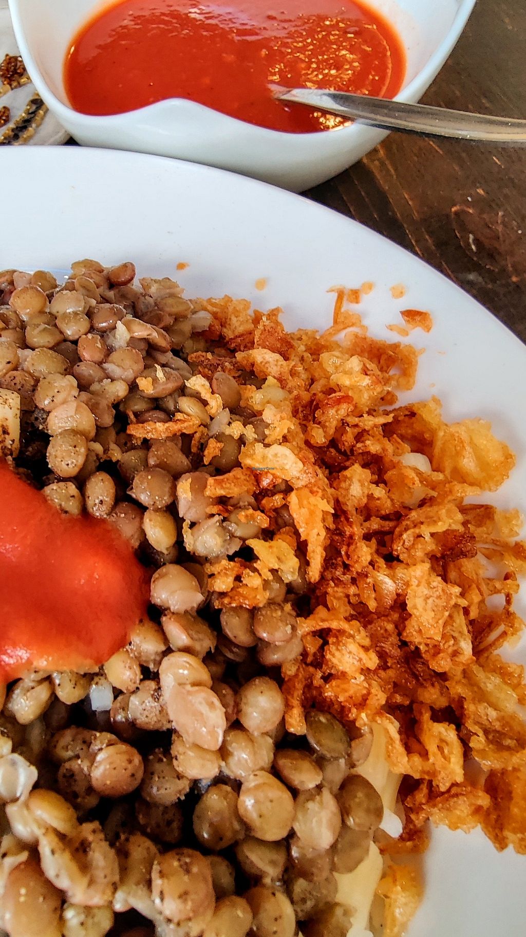Cons: Kleine Portionen, Koschari Geschmackssache , Teuer